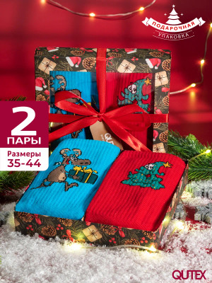QUTEX / Носки новогодние в подарочной коробке, набор 2 пары
