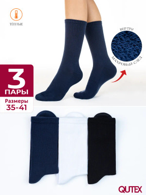 QUTEX / Носки женские теплые высокие махровые стопы, 3 пары