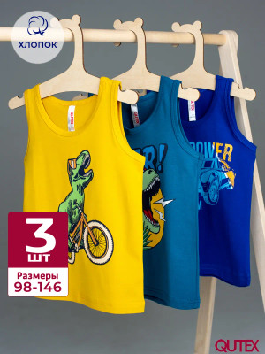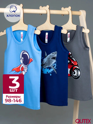 QUTEX / Майка детская трикотажная с принтом хлопок, набор 3 шт