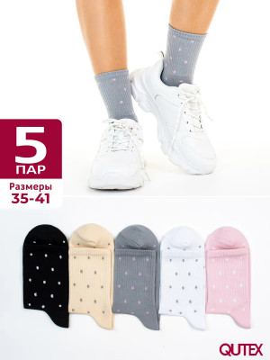 QUTEX / Носки женские в горошек набор, 5 пар