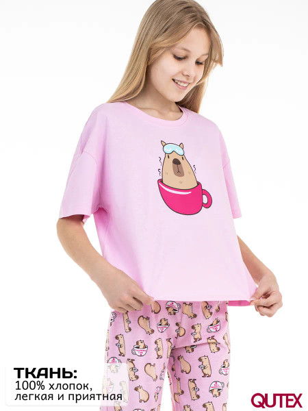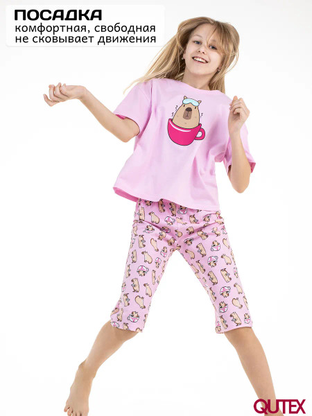 QUTEX / Пижама для девочки капибара, бриджи и футболка
