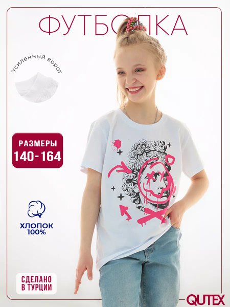QUTEX / Футболка детская подростковая с принтом трикотажная хлопок