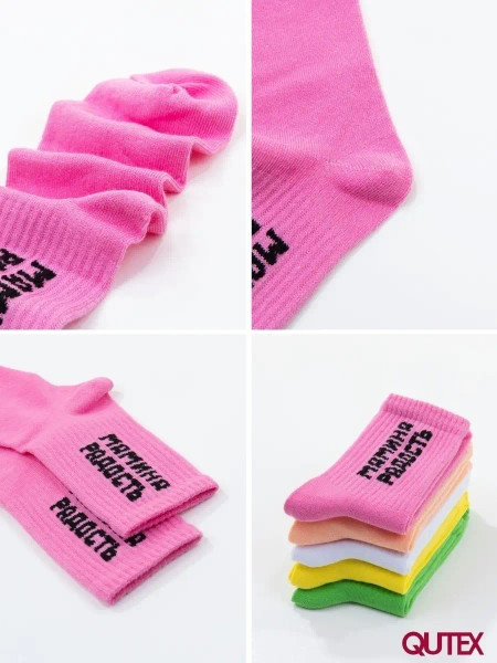 QUTEX / Носки детские для девочки с надписями, набор 5 пар