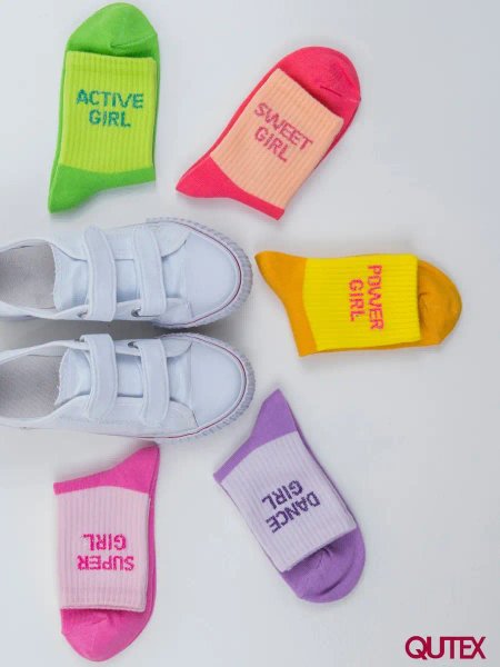 QUTEX / Носки детские для девочки с надписями, набор 5 пар