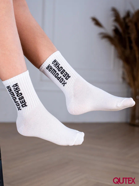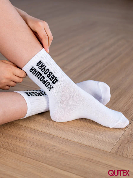 QUTEX / Носки детские для девочки с надписями, набор 5 пар