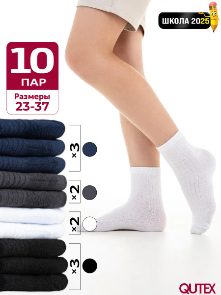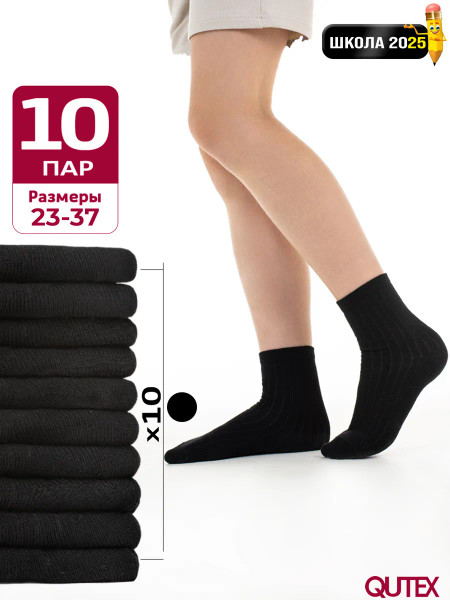 QUTEX / Носки детские для мальчика черные, набор 10 пар