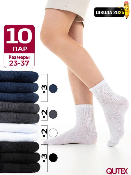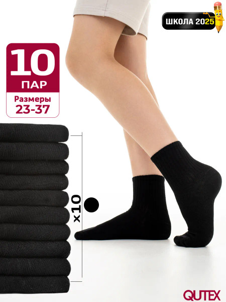 QUTEX / Носки детские для мальчика черные, набор 10 пар