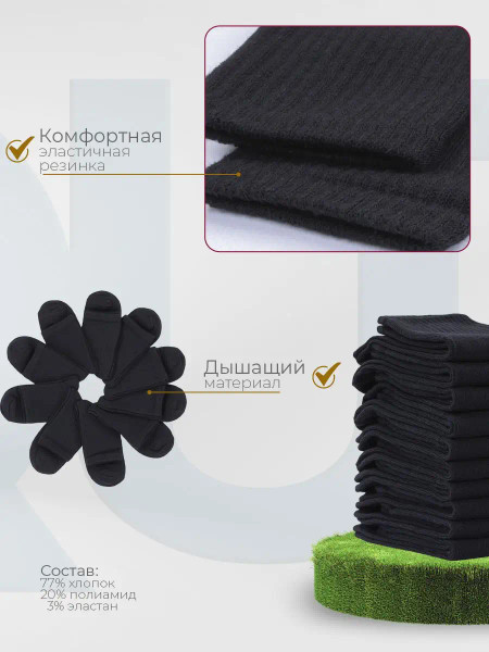| Комплектация | Носки 10 пар, 10 пар, черные носки 10 пар |
