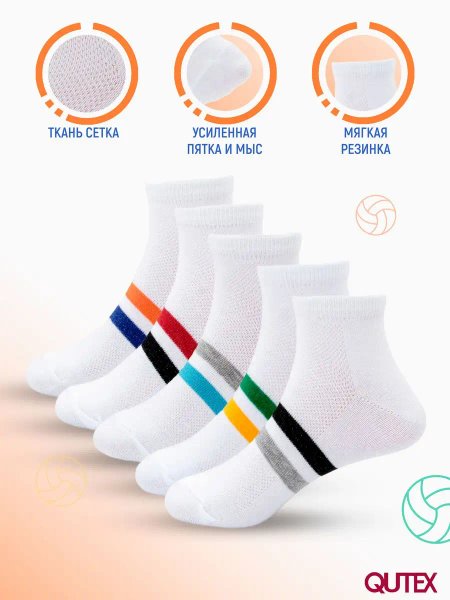 QUTEX / Носки для мальчика короткие летние с сеткой, 5 пар