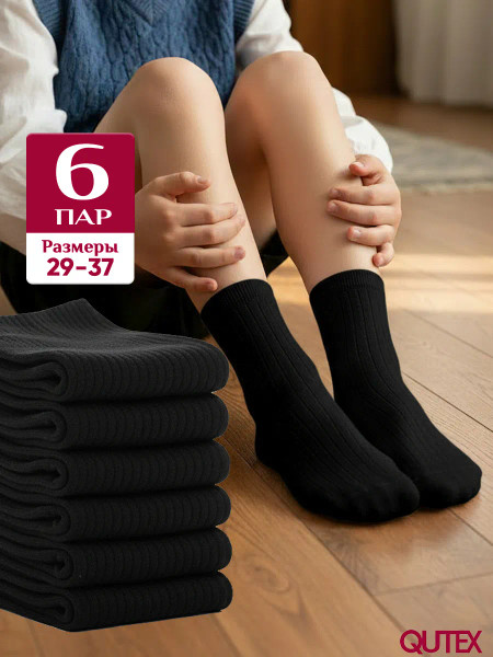 QUTEX / Носки детские черные, набор 6 пар